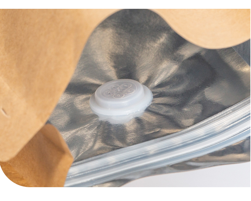 單向排氣閥可將二氧化碳排出袋外,并阻止袋外的氧氣進(jìn)入袋內(nèi)(空氣會(huì)氧化咖啡豆,使咖啡香氣揮發(fā),改變咖啡風(fēng)味)。空氣閥可確保咖啡的新鮮度和質(zhì)量。